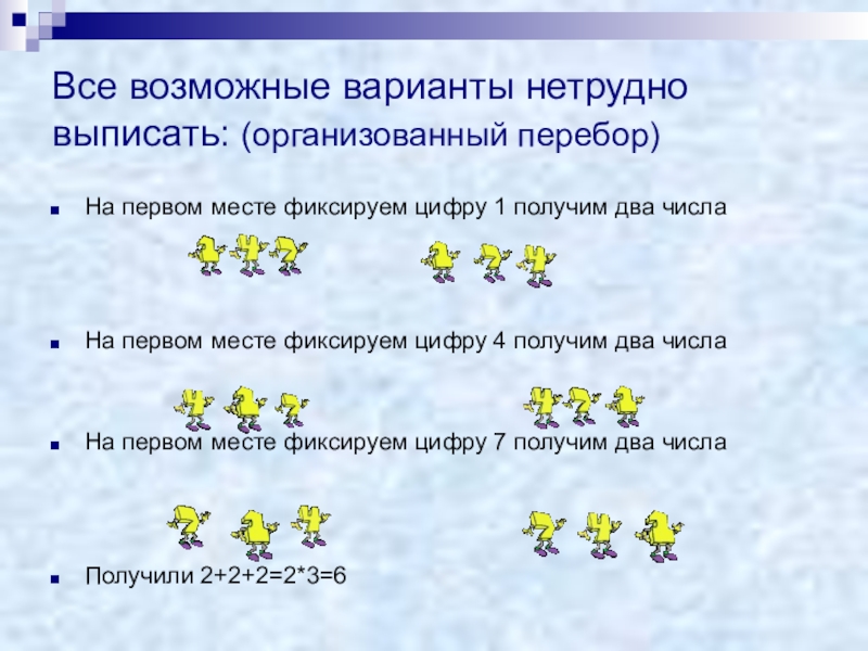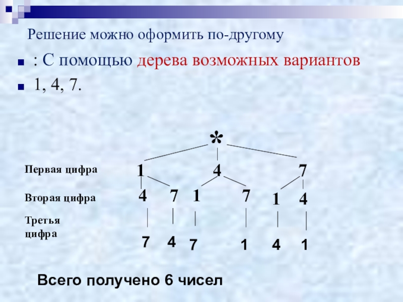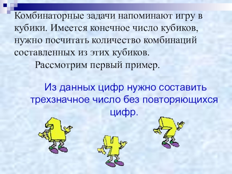 Из данных цифр нужно составить трехзначное число без повторяющихся цифр.