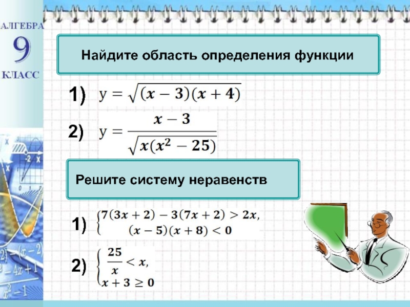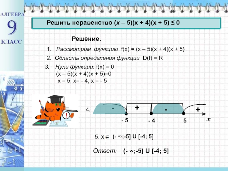 1. Рассмотрим функцию f(x) = (x – 5)(x + 4)(x + 5)