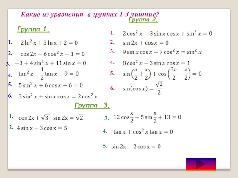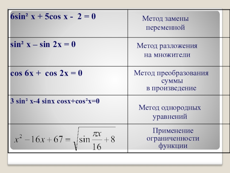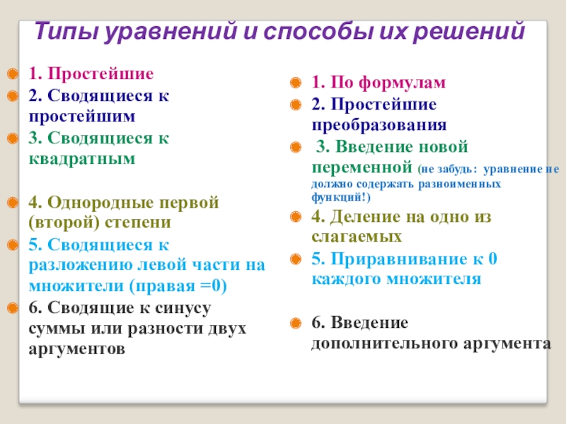 3. Введение новой переменной (не забудь: уравнение не должно содержать разноименных функций!)