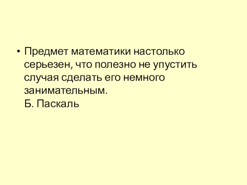 Предмет математики настолько серьезен, что полезно не упустить случая сделать его немного занимательным.  Б. Паскаль