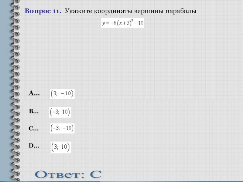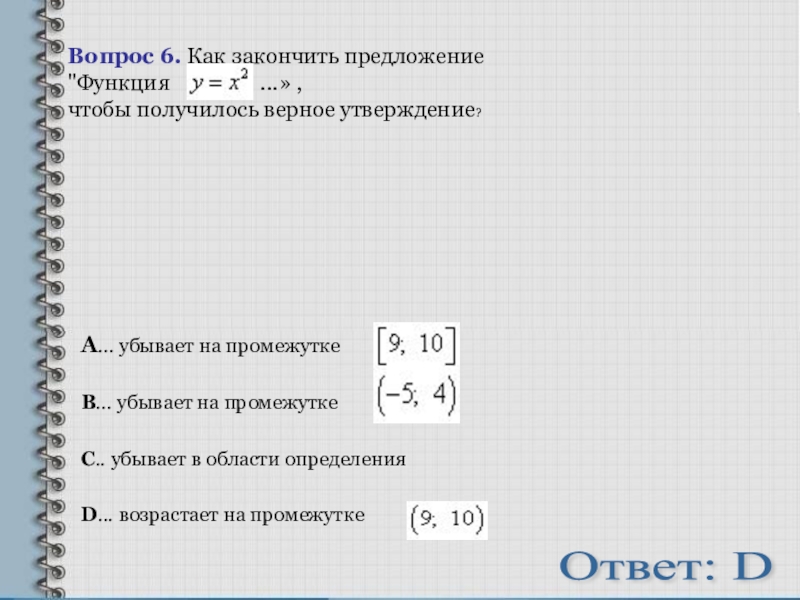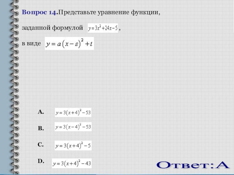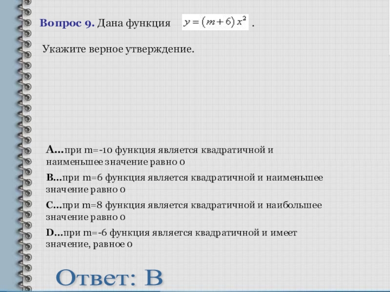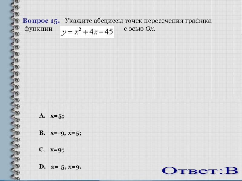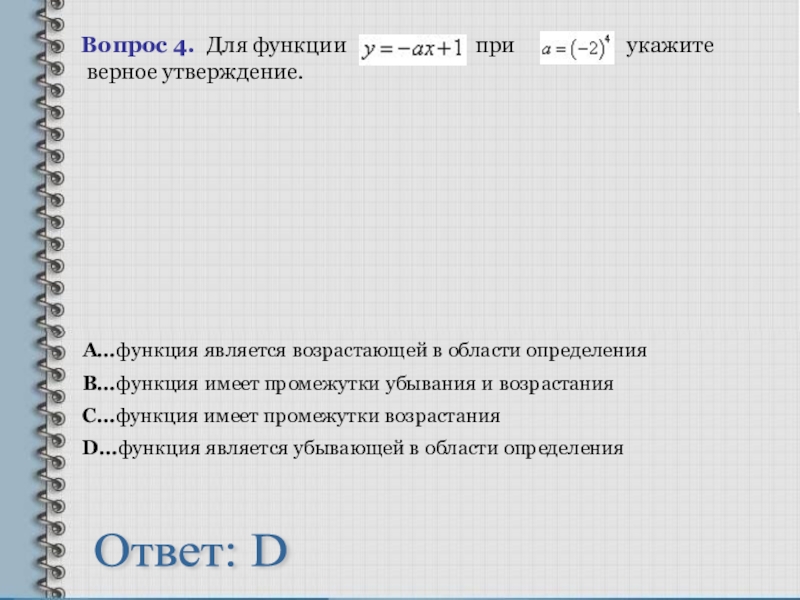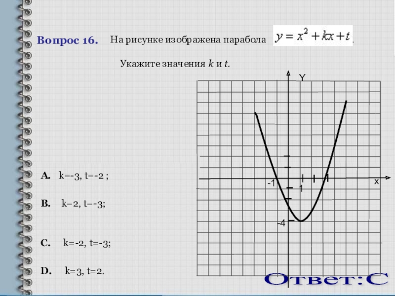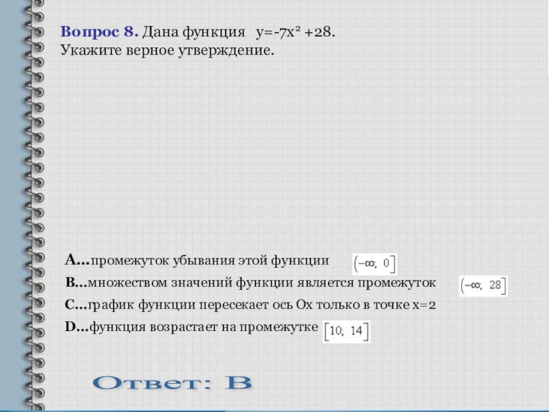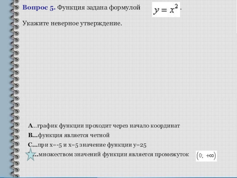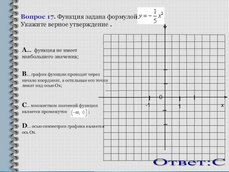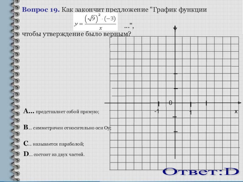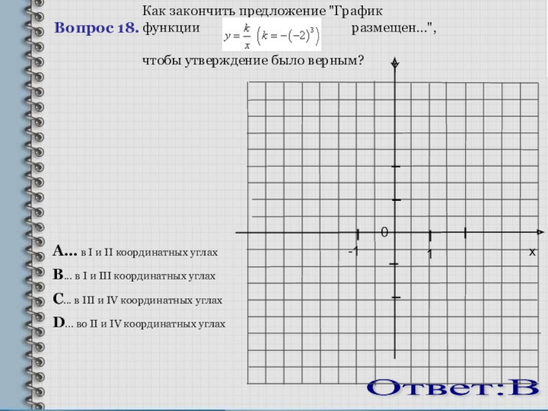 Вопрос 18. Какой формулой задана функция, график которой схематично изображен на рисунке.
