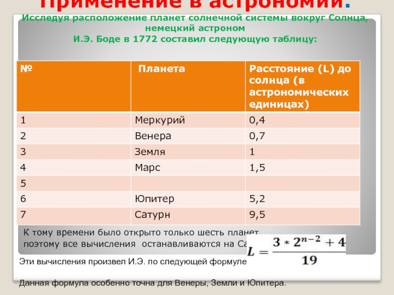 Данная формула особенно точна для Венеры, Земли и Юпитера.
