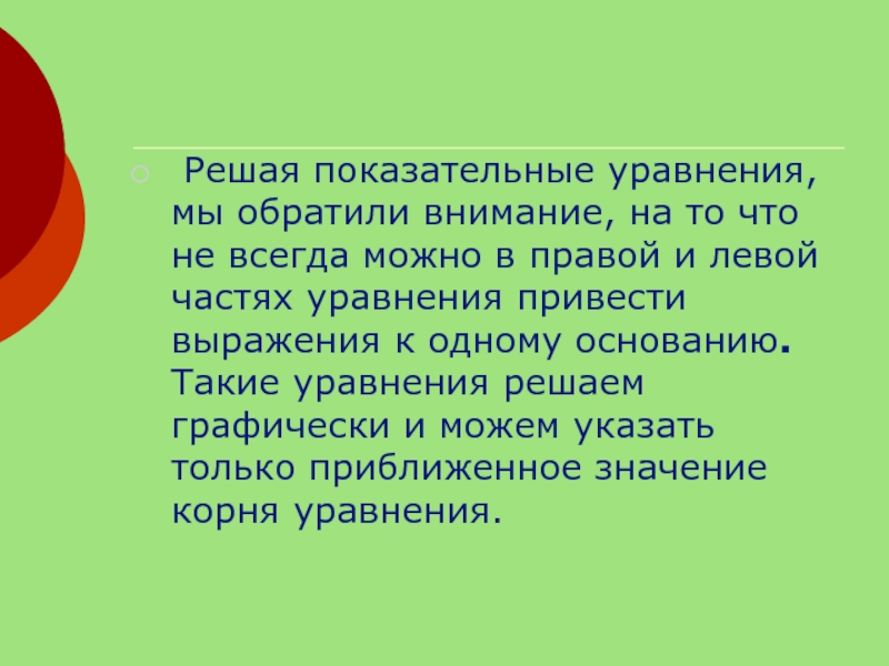 Слайд 4 Решая показательные уравнения, мы обратили внимание, на то что не