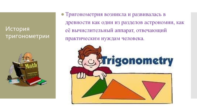Тригонометрия возникла и развивалась в древности как один из разделов