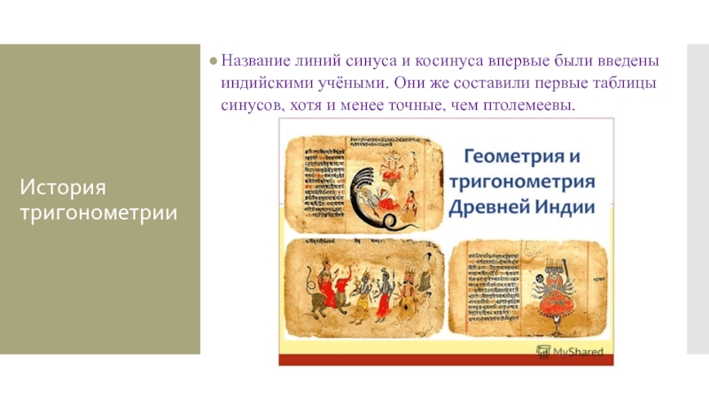Название линий синуса и косинуса впервые были введены индийскими учёными.