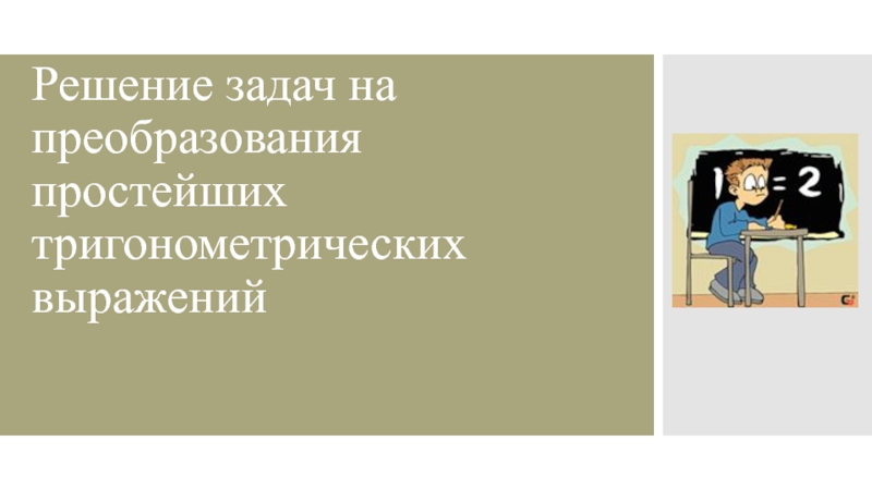 Слайд 1Решение задач на преобразования простейших тригонометрических выражений