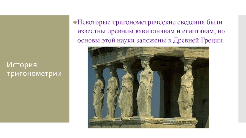 Некоторые тригонометрические сведения были известны древним вавилонянам и египтянам, но