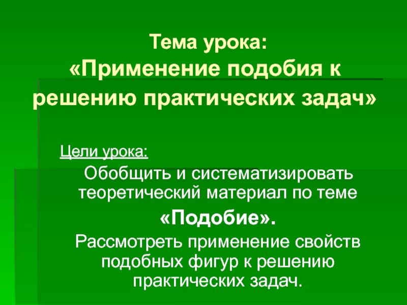 Рассмотреть применение свойств подобных фигур к решению практических задач.