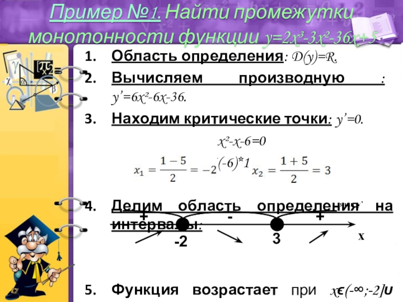 Пример №1. Найти промежутки монотонности функции y=2x³-3x²-36x+5
