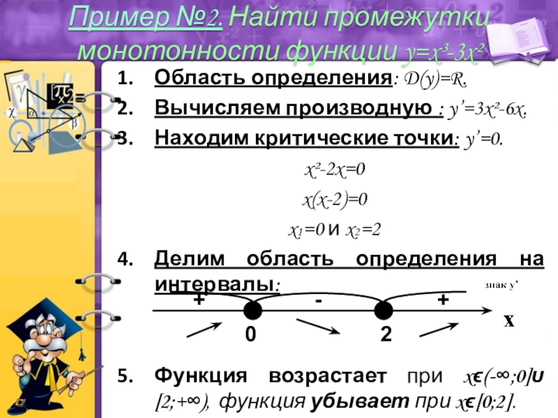 Пример №2. Найти промежутки монотонности функции y=x³-3x²