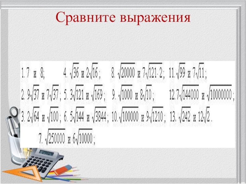 Слайд 4Сравните выражения