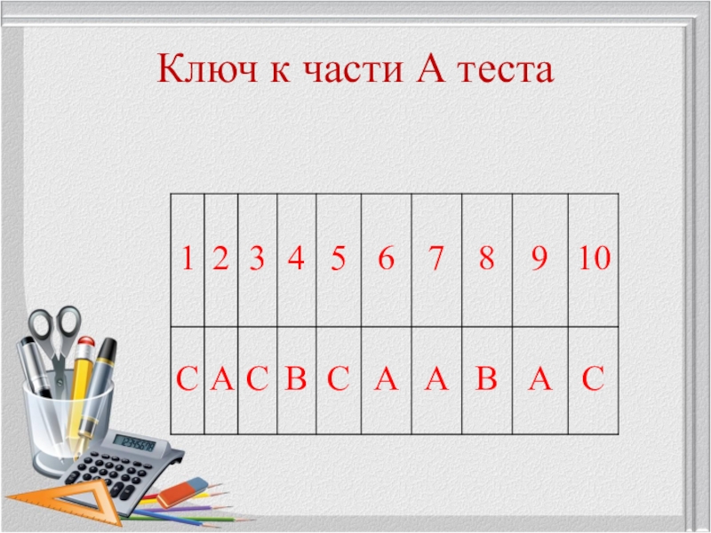 Слайд 6Ключ к части А теста
