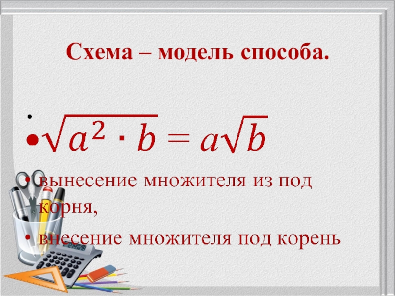 Презентация, доклад по математике Применение свойств квадратного корня
