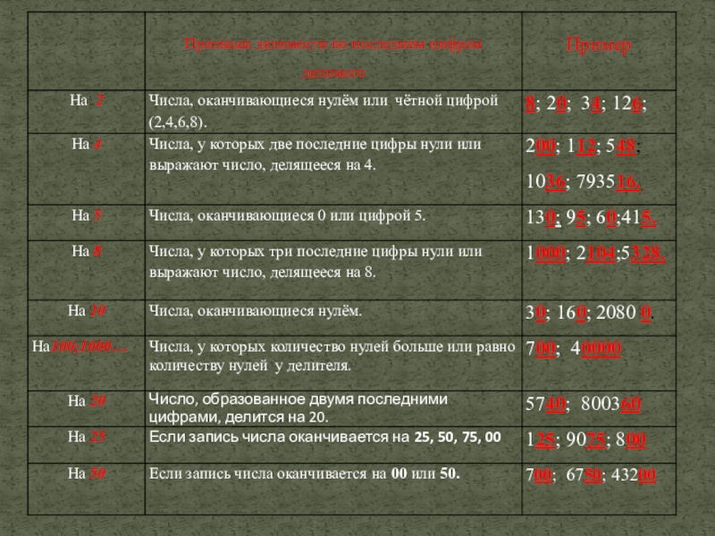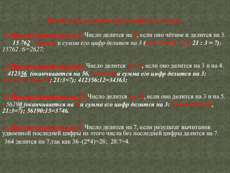 2. Признак делимости на12. Число делится на 12, если оно делится на 3 и на 4.