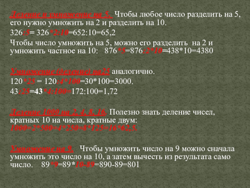 Деление и умножение на 5. Чтобы любое число разделить на 5,