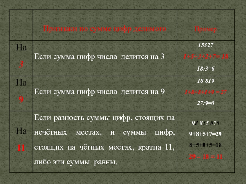 3. Признак делимости на 15. Число делится на 15, если оно делится на 3 и на 5.