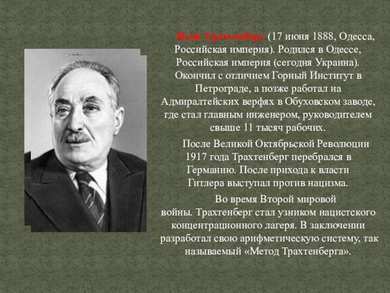 Слайд 6Яков Трахтенберг (17 июня 1888, Одесса, Российская империя). Родился в Одессе, Российская