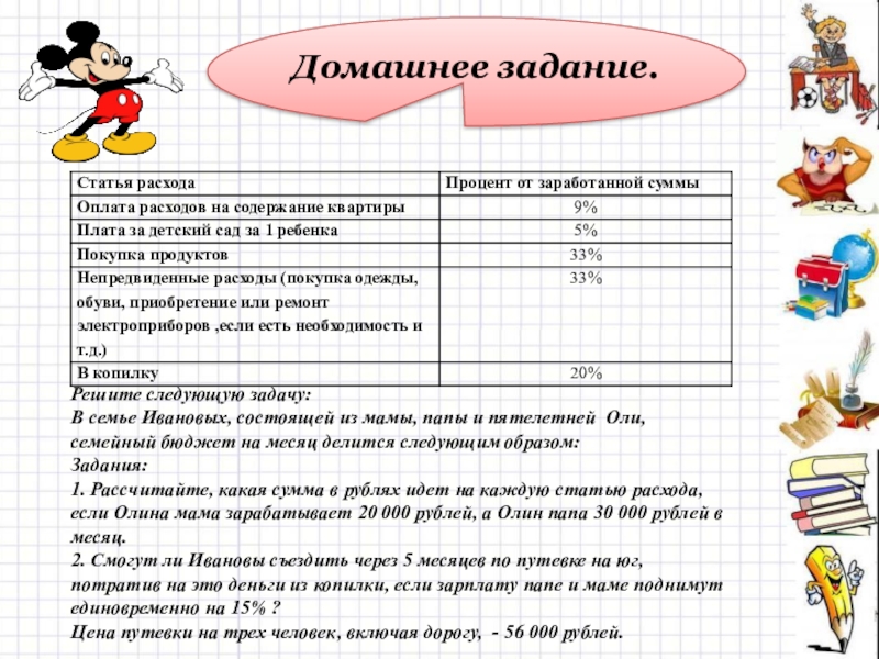 2. Смогут ли Ивановы съездить через 5 месяцев по путевке на юг, потратив на это деньги из копилки, если зарплату папе и маме поднимут единовременно на 15% ?