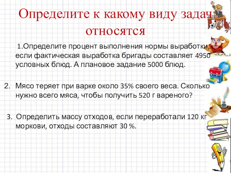 3. Определить массу отходов, если переработали 120 кг моркови, отходы составляют 30 %.