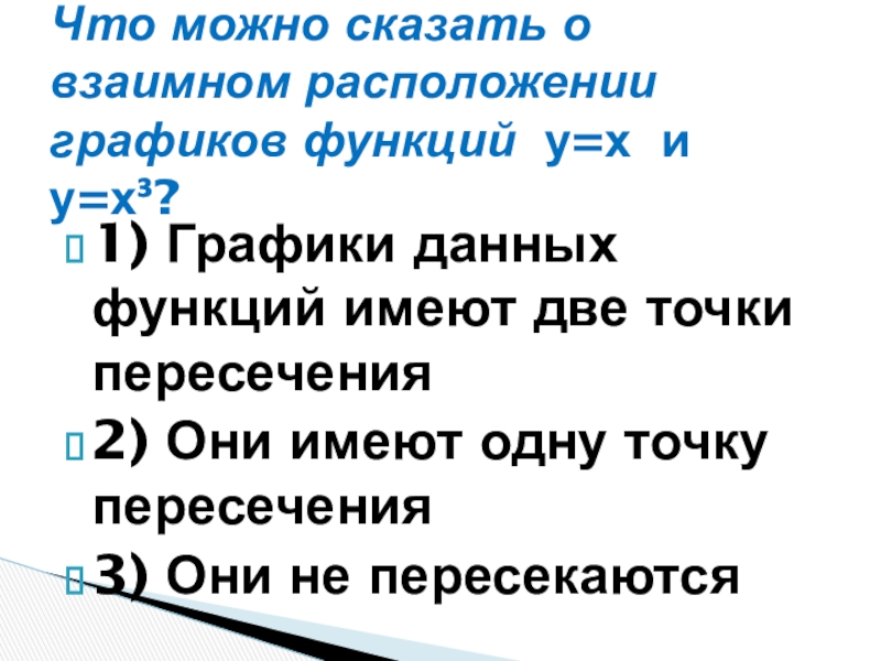 Что можно сказать о взаимном расположении графиков функций у=х и у=х³?