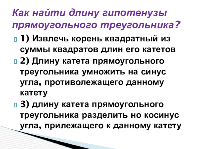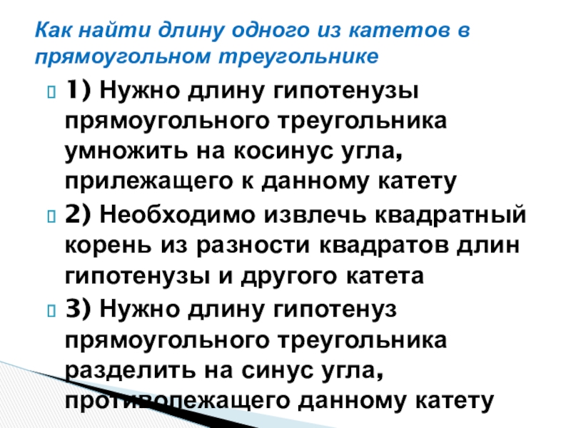 Как найти длину одного из катетов в прямоугольном треугольнике