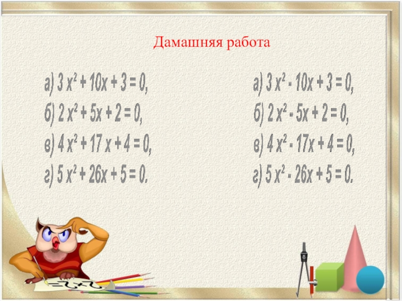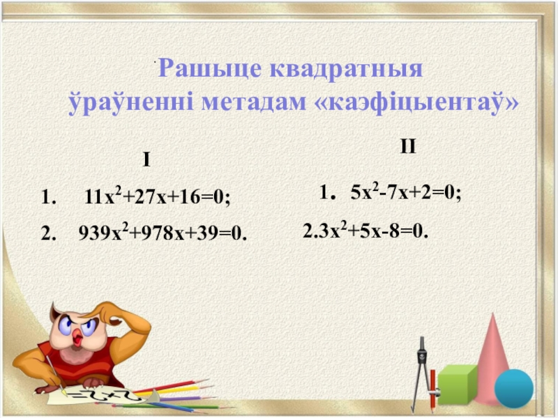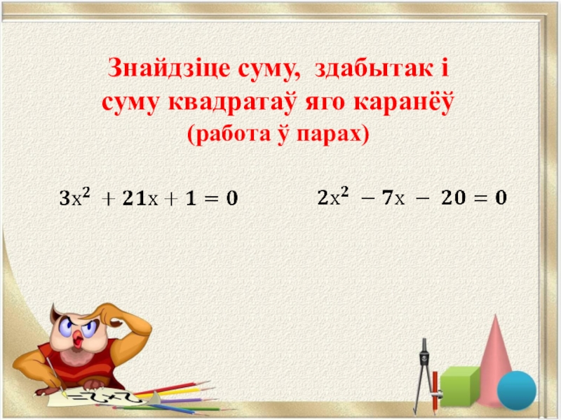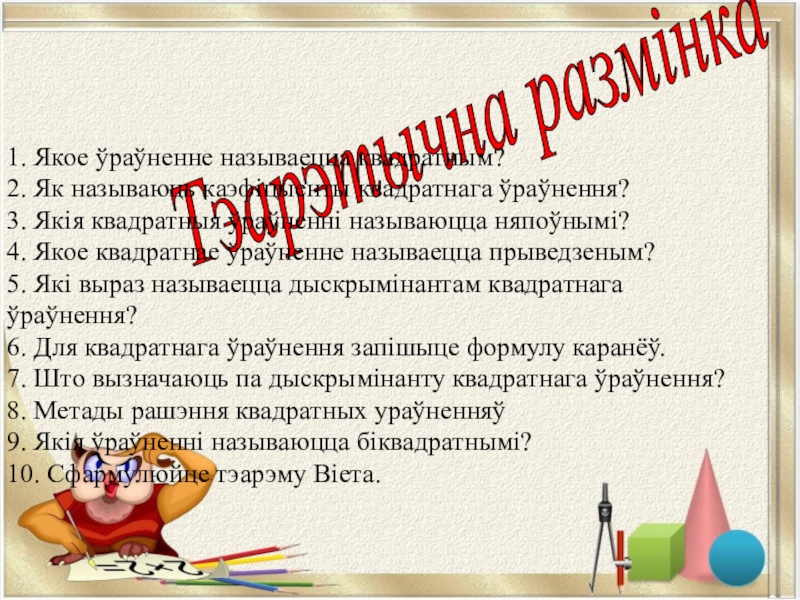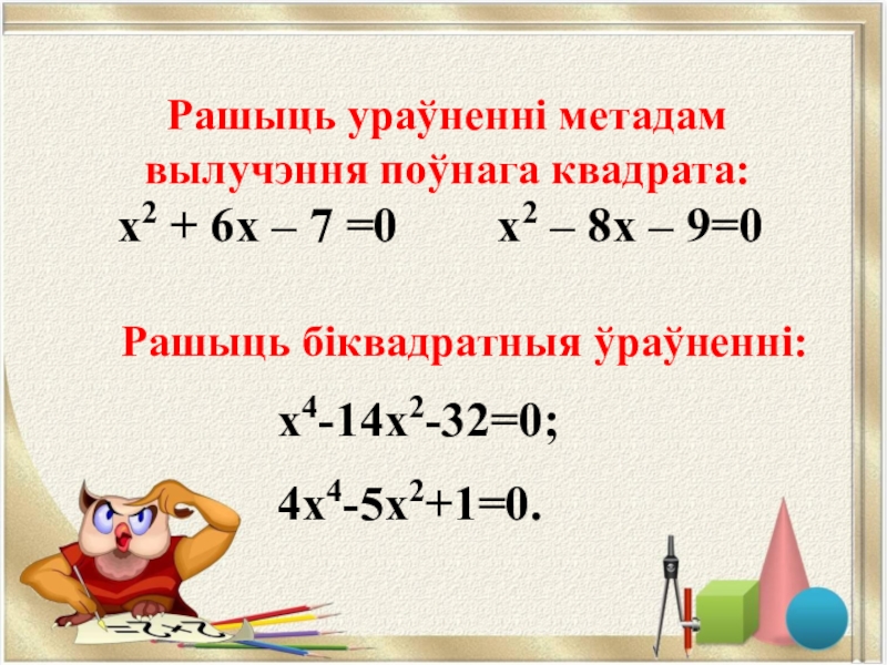 Рашыць ураўненні па формуле каранёў квадратнага ўраўнення