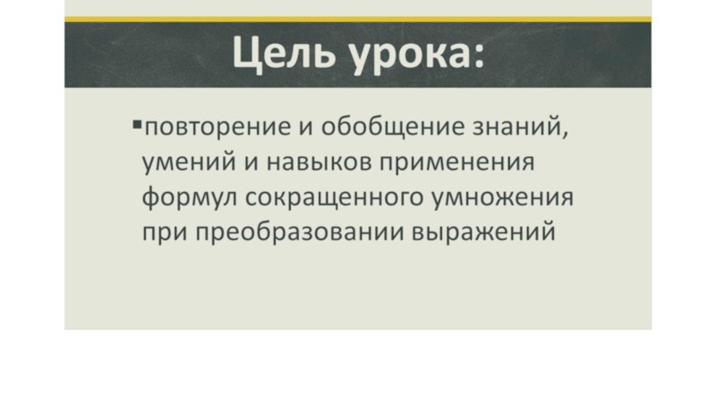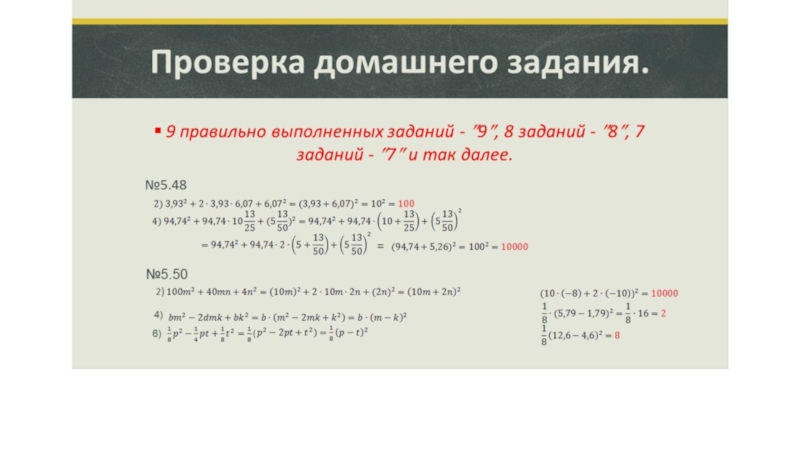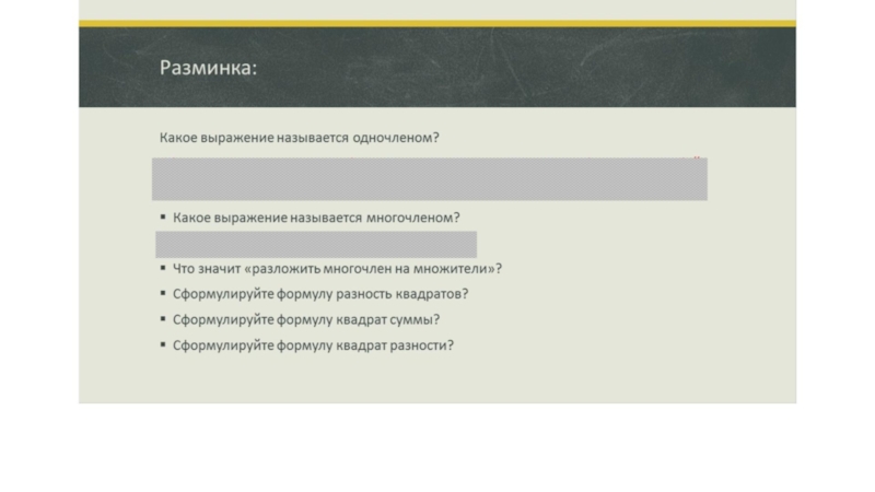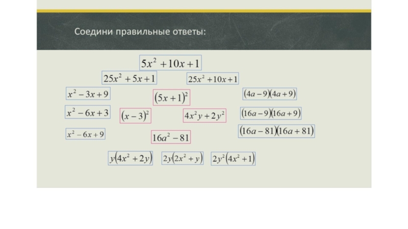 Презентация по математике Разложение многочленов на множители с помощью формул сокращенного умножения Алгебра