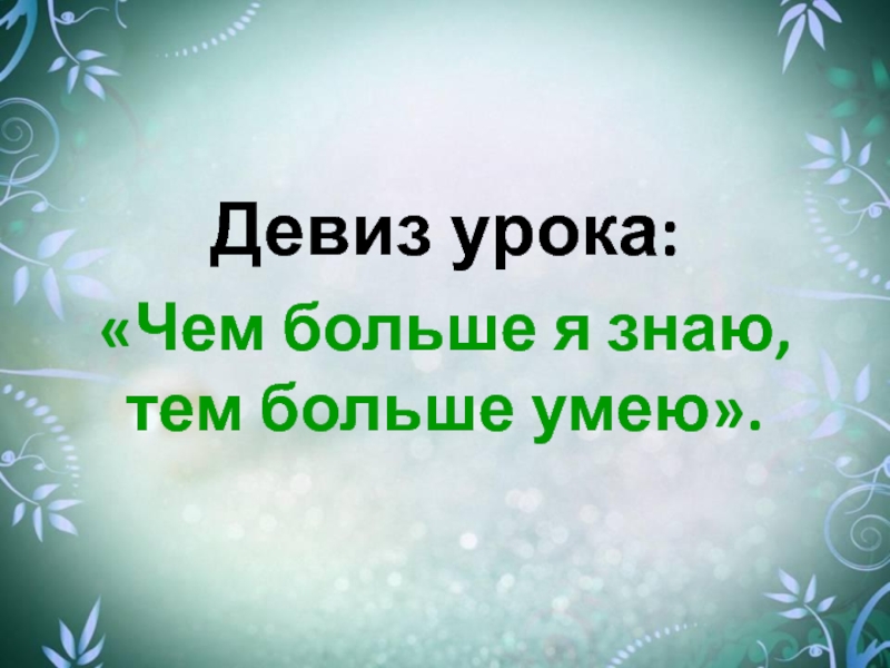 Девиз урока: «Чем больше я знаю, тем больше умею».