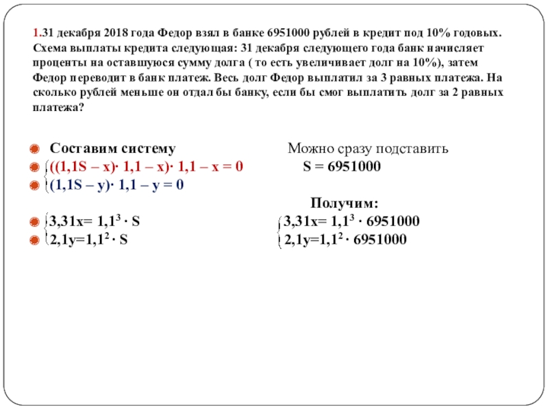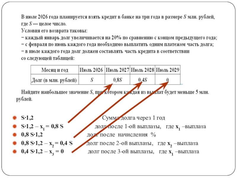 1,2S – х долг после 1ой выплаты