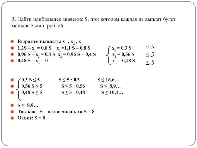 Выразим выплаты х1 , х2 , х3