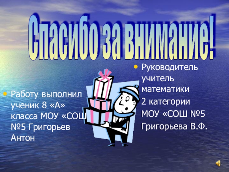 Работу выполнил ученик 8 «А» класса МОУ «СОШ №5 Григорьев Антон