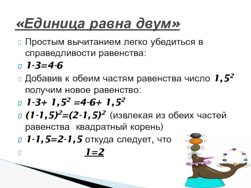 «Единица равна двум»