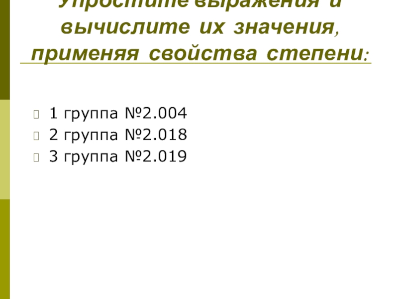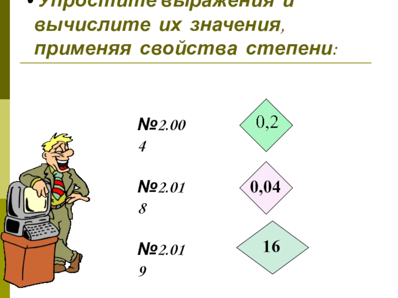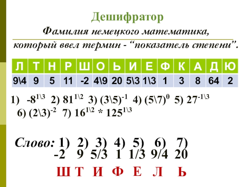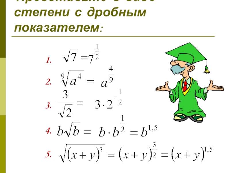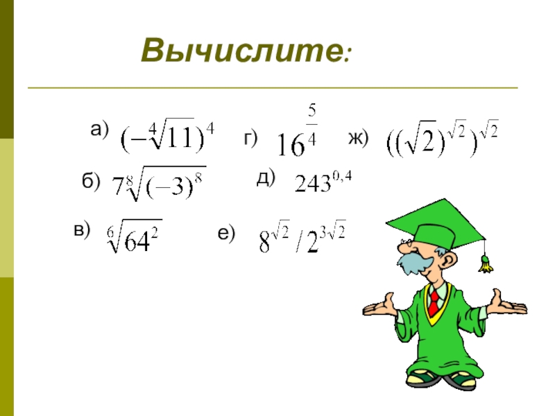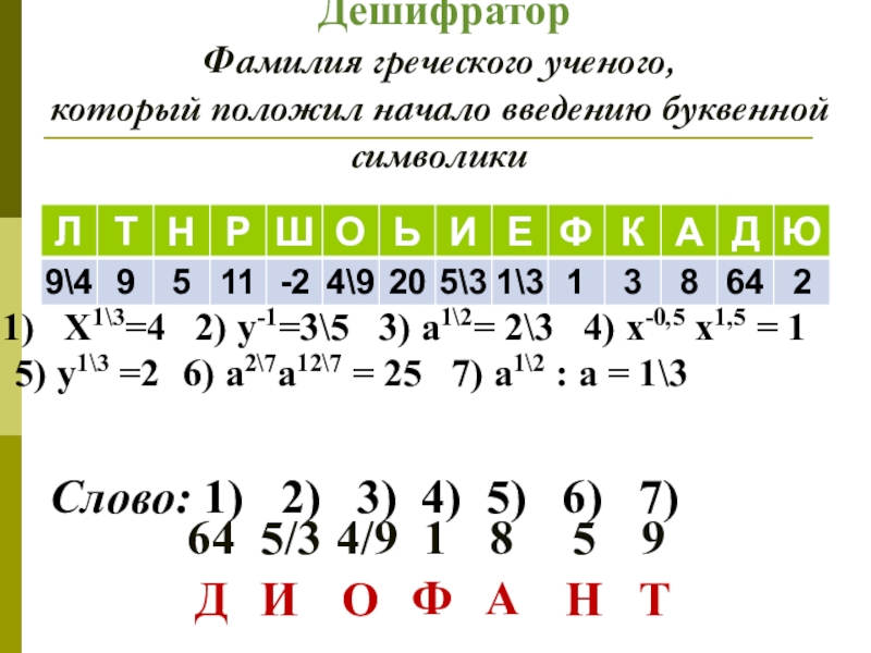 5) у1\3 =2 6) а2\7а12\7 = 25 7) а1\2 : а = 1\3