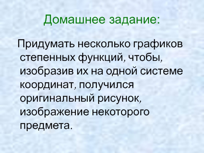 Домашнее задание: Придумать несколько графиков степенных функций, чтобы, изобразив их на одной системе координат, получился оригинальный рисунок,