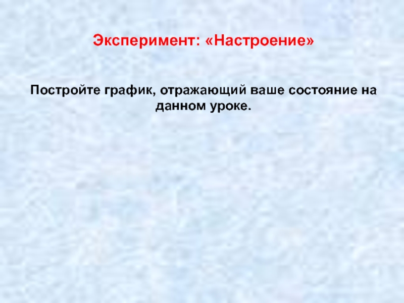 Слайд 16Эксперимент: «Настроение» Постройте график, отражающий ваше состояние на данном уроке.