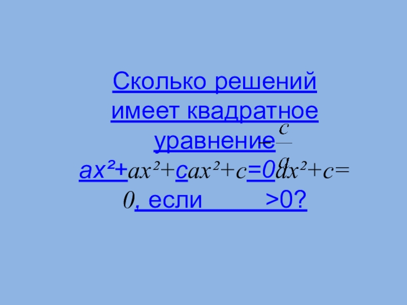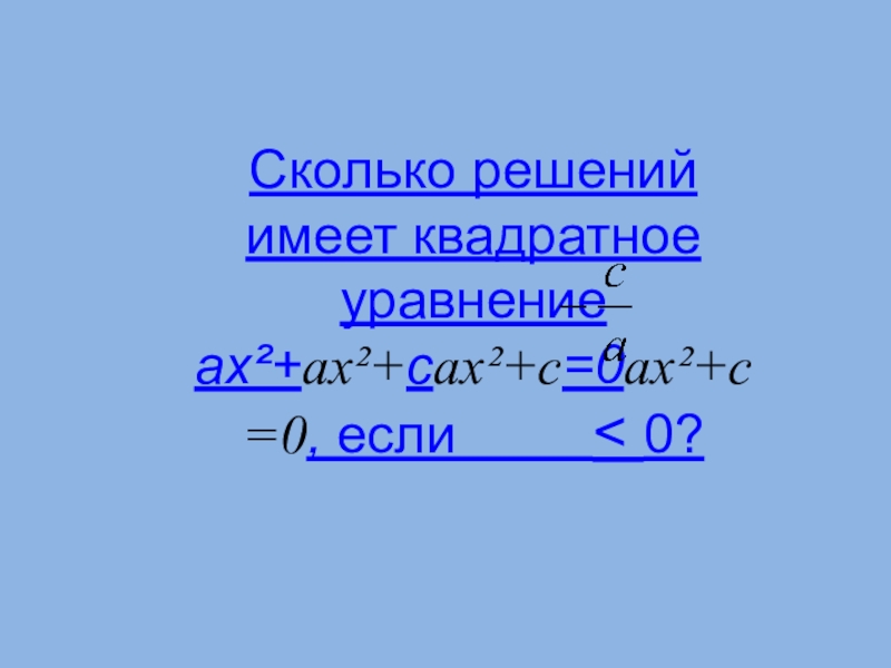 Слайд 30Сколько решений имеет квадратное уравнение ax²+ax²+сax²+с=0ax²+с=0, если