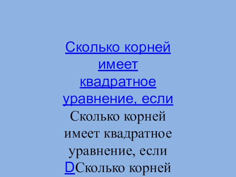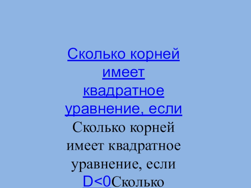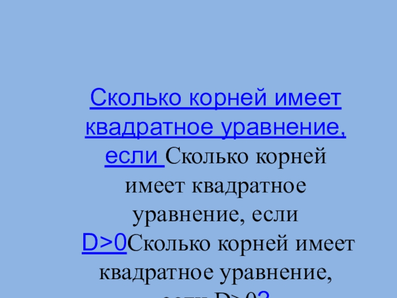 Сколько корней имеет квадратное уравнение, если Сколько корней имеет квадратное уравнение, если D>0Сколько корней имеет квадратное уравнение,