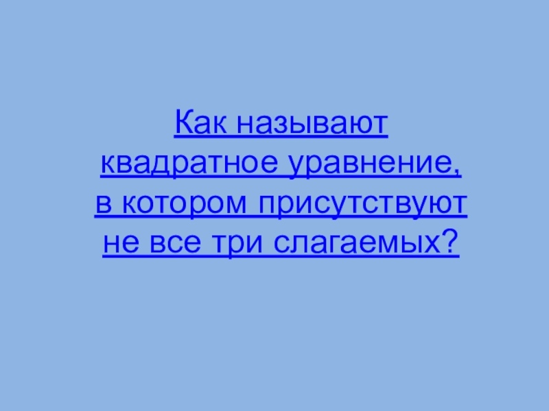Слайд 6Как называют квадратное уравнение, в котором присутствуют не все три слагаемых?
