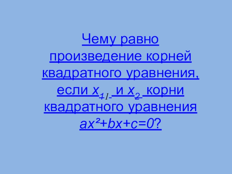 Слайд 11Чему равно произведение корней квадратного уравнения, если x11 и x2 корни