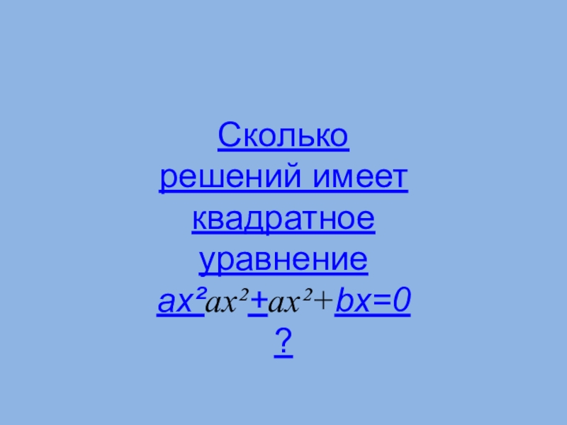 Слайд 28Сколько решений имеет квадратное уравнение ax²ax²+ax²+bx=0?