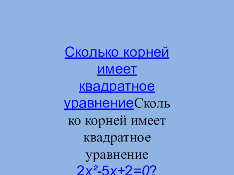 Сколько корней имеет квадратное уравнениеСколько корней имеет квадратное уравнение 2x²-5x+2=0?