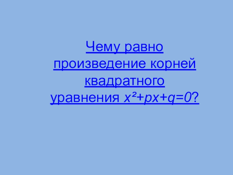 Слайд 15Чему равно произведение корней квадратного уравнения x²+px+q=0?