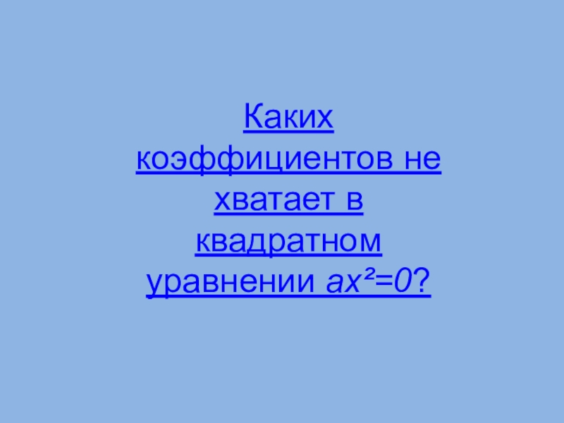 Слайд 24Каких коэффициентов не хватает в квадратном уравнении ax²=0?