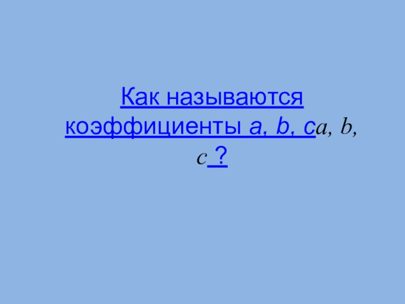 Слайд 8Как называют уравнение вида ax²+bx+c=0ax²+bx+c=0, где коэффициенты a, b, c a,
