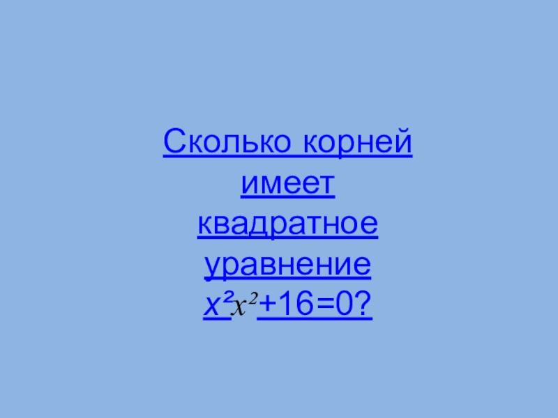 Слайд 27Сколько корней имеет квадратное уравнение x²x²+16=0?