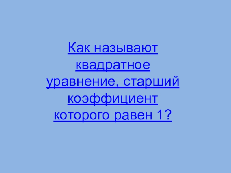 Слайд 4Как называют квадратное уравнение, старший коэффициент которого равен 1?