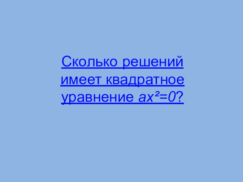 Слайд 26Сколько решений имеет квадратное уравнение ax²=0?