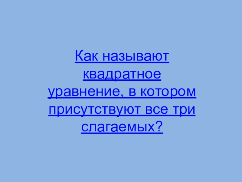 Слайд 7Как называют квадратное уравнение, в котором присутствуют все три слагаемых?