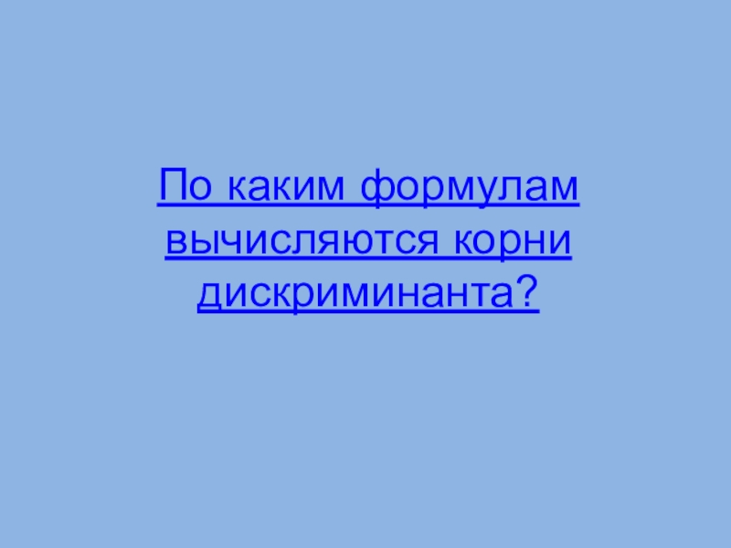 Слайд 18По каким формулам вычисляются корни дискриминанта?