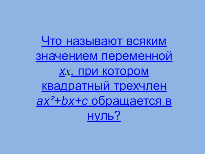 Слайд 9Что называют всяким значением переменной xx, при котором квадратный трехчлен ax²+bx+c